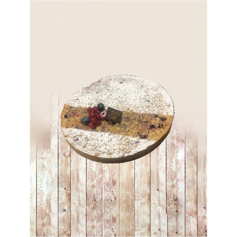 Pâte sablée amande, crème d'amande, fruits rouges, crumble amande