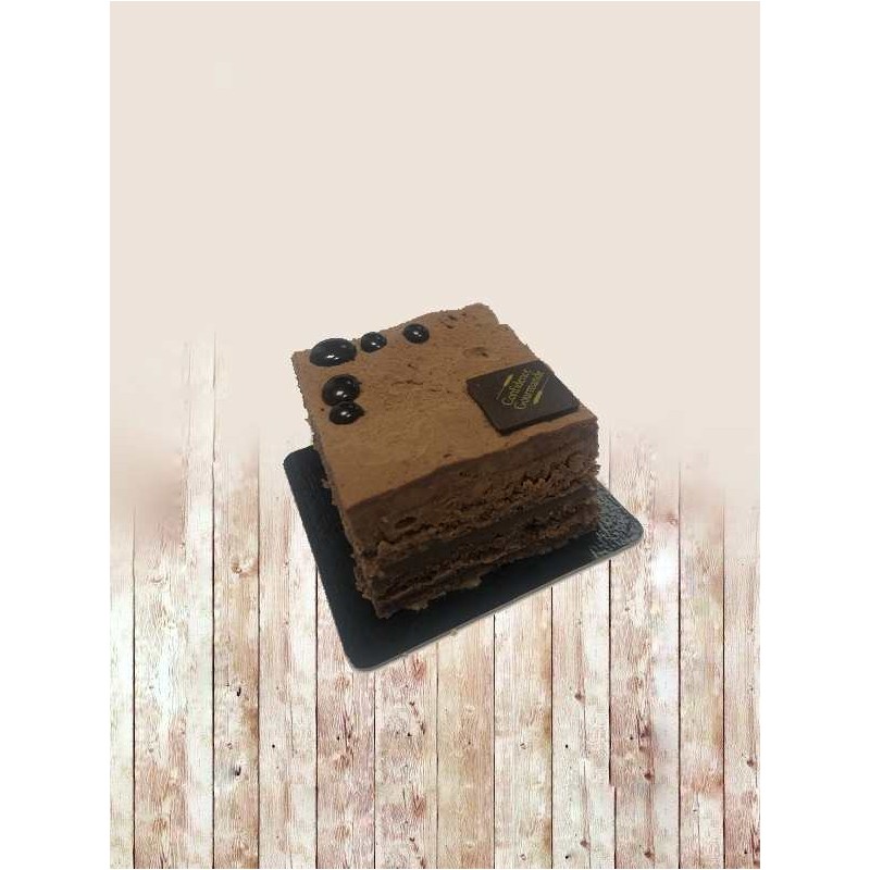 Mousse chocolat, crémeux chocolat, croustillant praliné, biscuit brownies