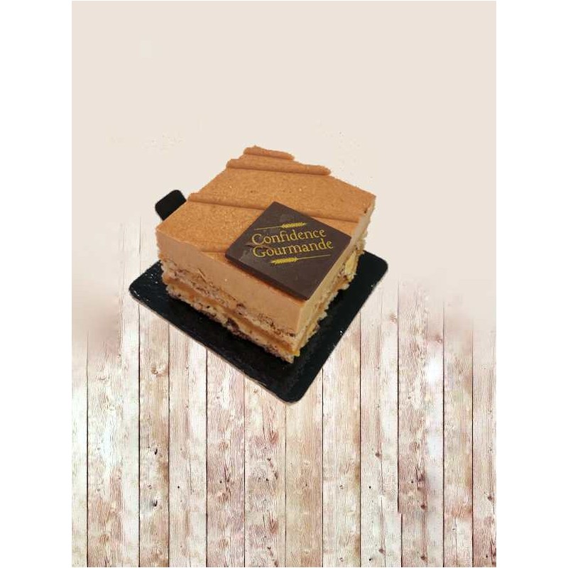 Mousse praliné, dacquoise noisette, caramel beurre salé
